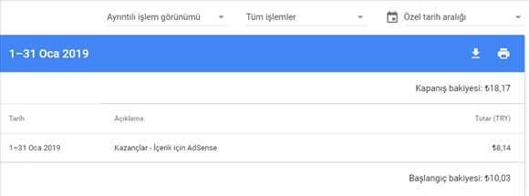 Ocak 2019 için toplam kazancımız. 8,14 tl. üye sayımız ve entry sayımız ile doğru orantıda azalmıştır. tüm üyelerin profillerine yansıtılmıştır.