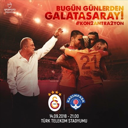 Bu gün saat 21:00 de türk telekom arenada oynanacak karşılaşma. 5.Hafta maçı. lider kasımpaşa (12 puan) karşısında ikinci sırada olan galatasarayımızın (9 puan) karşılaşması.