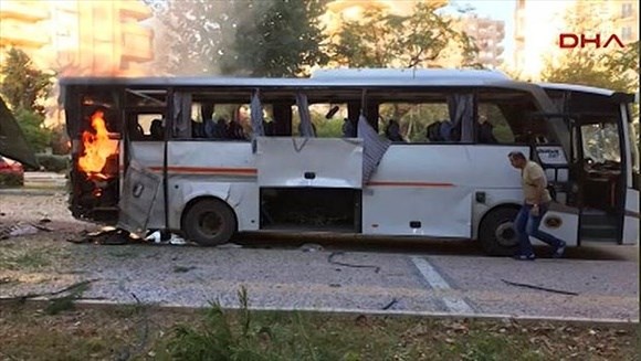 Mersin'de polis servis aracının geçişi sırasında düzenlenen bombalı saldırıda 12 polis yaralandı.