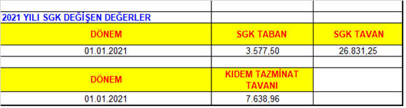 2021 YILI SGK DEĞİŞEN DEĞERLER