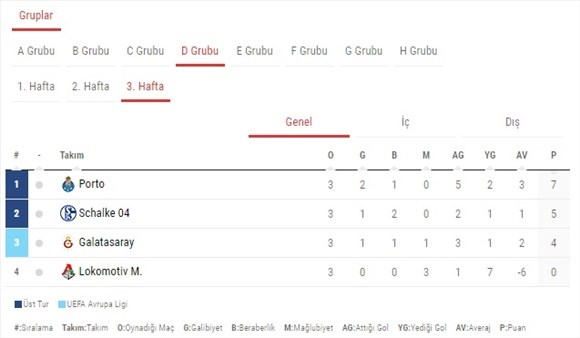 grupta porto 7 puan ve schalke 5 puan ile birinci ve ikinci olarak sıralanıyor.