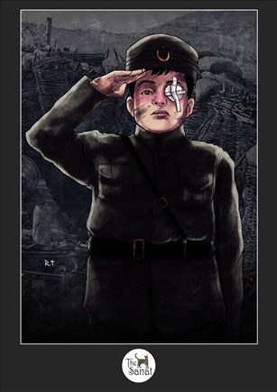 İSİMSİZ KAHRAMAN: Acıkmaz mıydın, acıkırdın elbet. Hem de zil çalardı karnın. Ama menünde sadece bir kuru ekmek olurdu. Hoşaf da çıkarsa ziyafet sayardın. Uykun da gelirdi elbet. Uyurdun; yarımşardan toplam iki saat. Yatağın toprak, yorganın gece olurdu. Sonra bir gün, bir şarapnel parçası geldi şakağına ve öldün. Hiç şikayet etmedin. Ne açlıktan ne uykusuzluktan ne de ölümden. Sen öldüğün için biz yaşıyoruz.