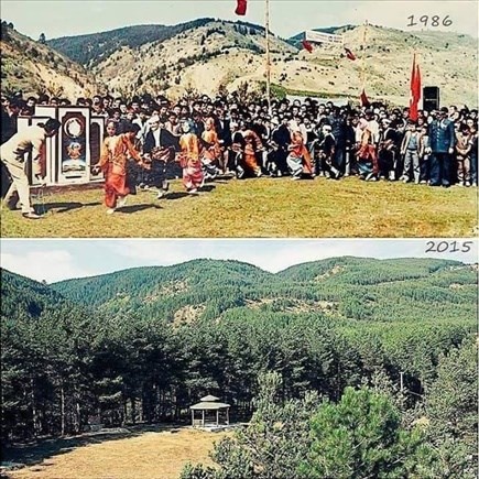 1986 yılında Bolu'nun Gerede ilçesinde ağaçlandırma çalışması ve 29 yıl sonraki hali