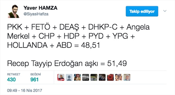 16 nisan 2017 referandum seçim sonuçları