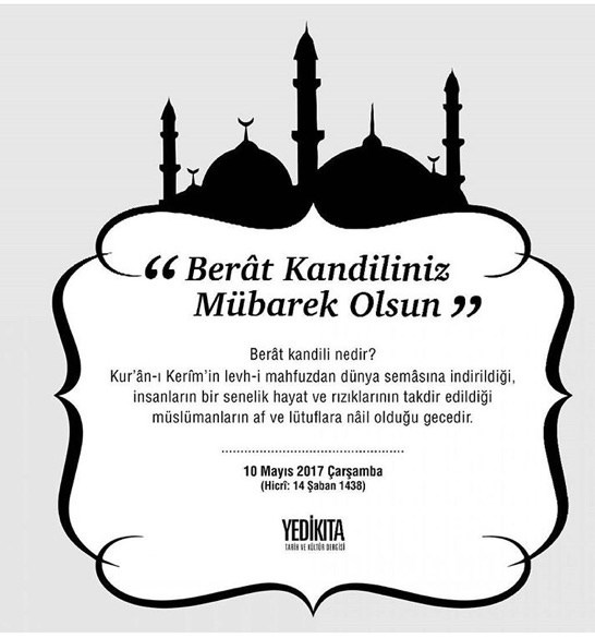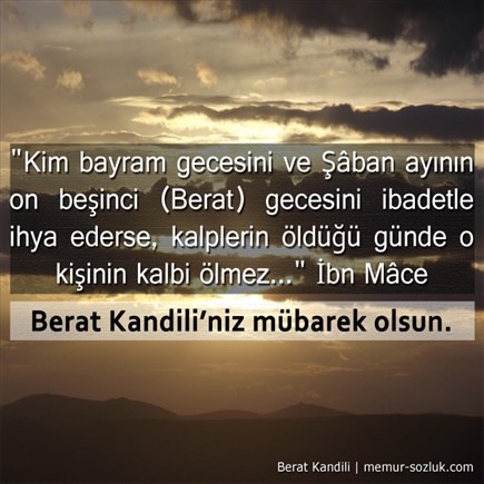 Berat kandilinizi tebrik eder ; size, ailenize, Ümmet-i Muhammed'e sıhhat, afiyet, maddi ve manevi mutluluk ve esenlikler dilerim.