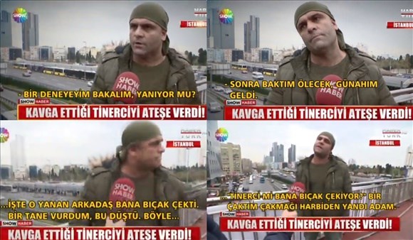gecenin bi vakti abinin önünü kesmiş tinerciler e abi ne yapsın önce dövmüş sonra çakmış kibriti bakayım yanıyorlar mı diye.