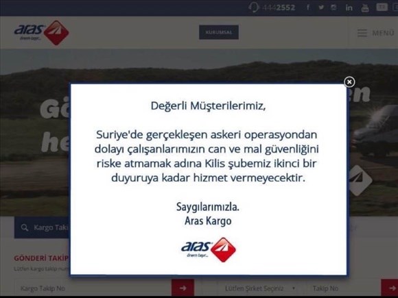 Devlet ve Vatandaş Kilis'i terketmedi! Siz ise millete ihanet edip terkettiniz! aras kargo ile çalışmayınız! Boykot ediniz!