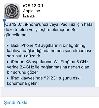 iOS 12.0.1, iPhone'unuz veya iPad'iniz için hata düzeltmeleri ve iyileştirmeler içerir. Bu güncelleme: