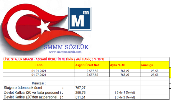 Devlet Katkısı (20'den az personel ) : 511,51 ( 3 de 2 Devlet)