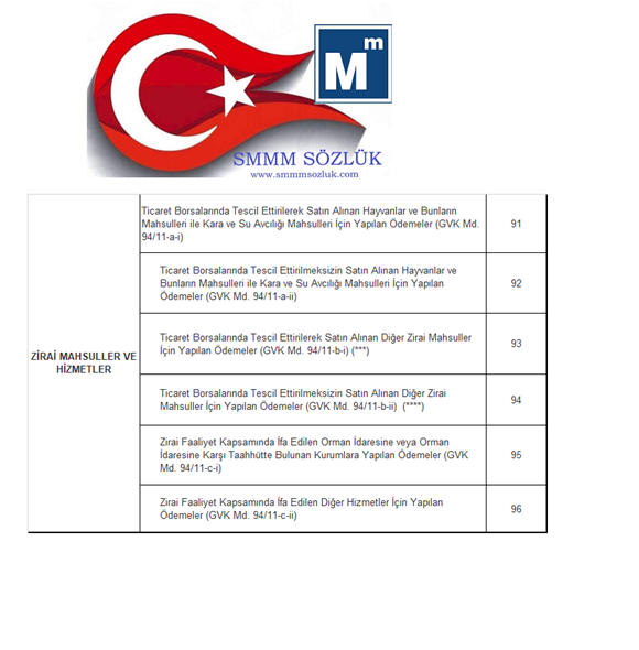 Ticaret Borsalarında Tescil Ettirilerek Satın Alınan Hayvanlar ve Bunların Mahsulleri ile Kara ve Su Avcılığı Mahsulleri İçin Yapılan Ödemeler (GVK Md. 94/11-a-i) 91