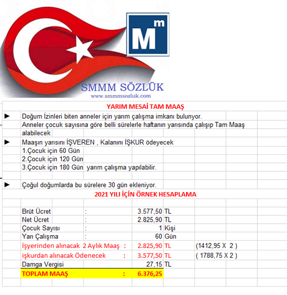Anneler çocuk sayısına göre belli sürelerle haftanın yarısında çalışıp Tam Maaş
