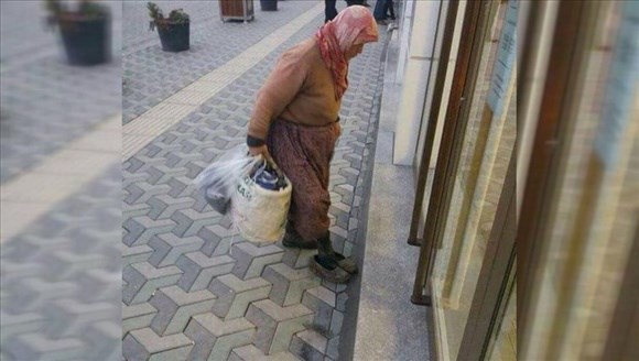 Ankara'nın Beypazarı ilçesinde bir bankanın şubesine gelen yaşlı bir kadın, ayakkabılarının çamurlu olması nedeniyle içeri girmedi.