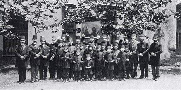 Kağıthane'de bulunan Dilsizler Mektebi'nin hoca ve talebeleri.