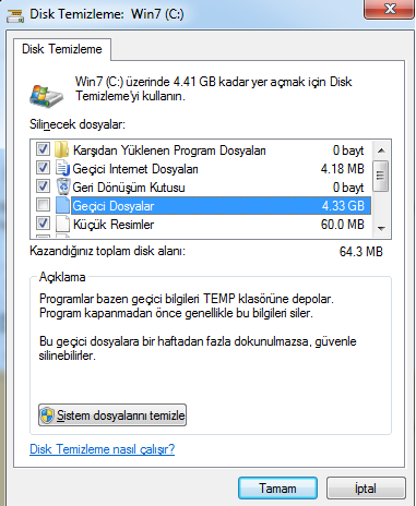 bilgisayarda belli bir alan daha açmak için sık sık olmasa da, arada sırada yapılması gereken bir tür sistem taramasıdır. bunda esas amaç şudur, hani internet üzerinden video izliyoruz ya, youtube, dizi film vs. işte bu yüklemeleri siliyor. ve zaman aralığına bağlı olarak baya bir yer açıyor, faydası oluyor.