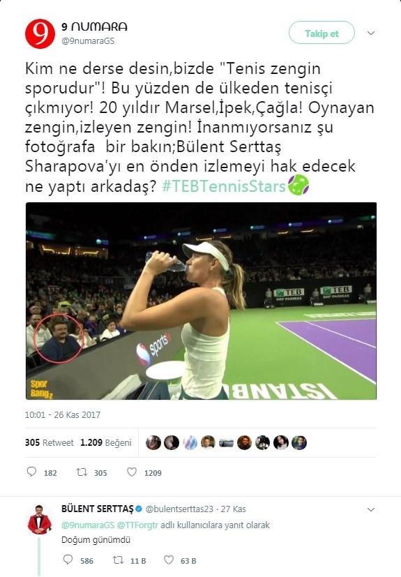 Bülent Serttaş Sharapova'yı en önden izlemeyi hak edecek ne yaptı arkadaş?