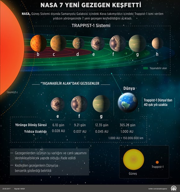 Trump nasa'nın ödenelerini keseceğini açıklayınca nasa hemen dünya benzeri 7 gezegen bulduk diye bir yem attı ortaya. 40 ışık yılı uzaklıkta bir yıldızın etrafında dönen gezegenlerden 3 tanesi yaşanılabilir nitelikteymiş. Tabi diğer bir küreselci kuruluş google da hemen nasa daki abilerini destekleyen bir eylemle alel acele bir doodle üretti. Yakında nasa nın küresel tek devlet emellerine hizmet etmek üzere ufo'ların varlığını da resmen açıklamasını bekliyorum.