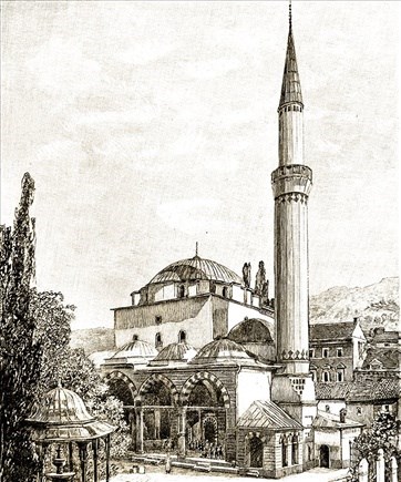 *Saraybosna'da bulunan Gazi Hüsrev Bey Camii'nin bir çizimi. Bu cami için Ahmed Cevdet Paşa, “Bosna'nın Ayasofya'sı” der.