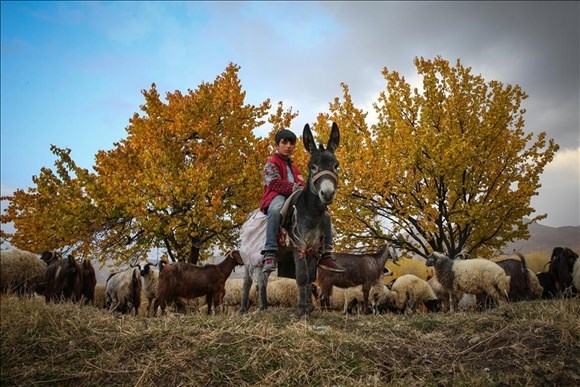 Vanda bir çocuk okuldan arta kalan zamanlarında koyun ve keçilerini otlatarak babasına yardımcı oluyor.