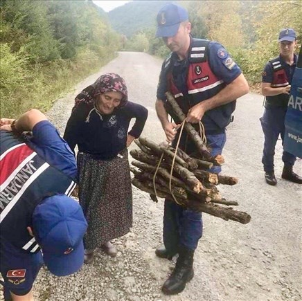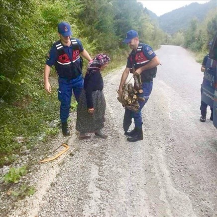 Kastamonu/Çatalzeytin'de yaşayan ve evine odun götüren 80 yaşındaki nineyi gören Jandarma devriyesi, ninemizin taşıdığı odunları alarak evine kadar götürdü.
