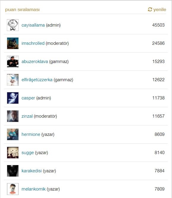 puan sıralamasına bu adresten bakabilirsiniz. ayrıca kendi puanınıza profilinizden ulaşabilirsiniz.