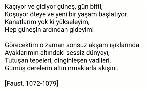 Nicola Tesla, "Faust"u ezbere biliyordu. 1919'da arkadaşıyla gezinirken ekteki dizeleri okudu. O an, alternatif akım motorunun çalışma ilkesi gözünde canlandı.