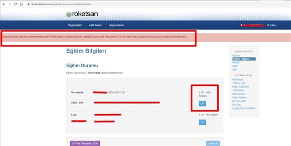 Üniversite ortalaması 3'ün altında olanlardan cv almayan bir kurum.