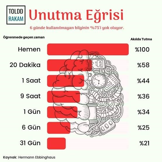 öğrendiklerimizin yarısından fazlasını kısa bir süre geçtikten sonra, yeterince tekrar etmezsek unuturuz.