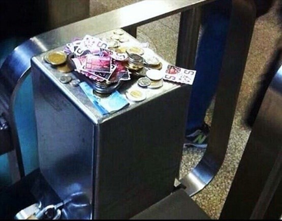 Kanada'da bir metro istasyonunda turnike bozuldu. Çevrede de güvenlik veya görevli yoktu. Ama insanlar parasını bozuk turnikenin köşesine bırakıp geçtiler.