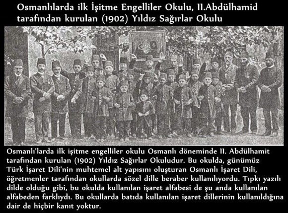 Osmanlı'da ilk işitme engelliler okulu, Sultan II.Abdülhamid Han tarafından 1902 yılında kurulmuştur.