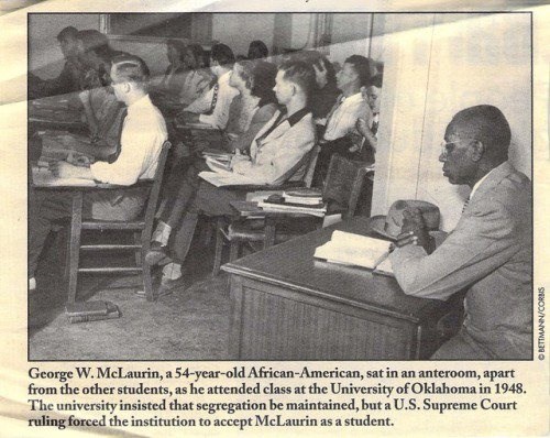 1948 - Oklahoma Üniversitesi'ne kabul edilen ilk Afro-Amerikan öğrenci olan George McLaurin, beyaz öğrencilerden ayrı oturmak zorunda bırakılmıştı.