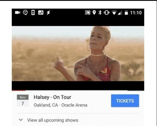 Bugün itibarıyla YouTube birçok sanatçının konser günlerini, videoları üzerinden kullanıcılarla paylaşmaya başladı. Yani sevdiğiniz şarkı ruhunuzu okşamaya başlamışken, bir anda video üzerinde şarkıcının konser tarihlerini görecek ve YouTube'da konser bileti almaya yönlendirileceksiniz.