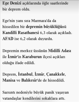 İstanbul'da da hissedildi. 6.3 şiddetinde olduğu söyleniyor.