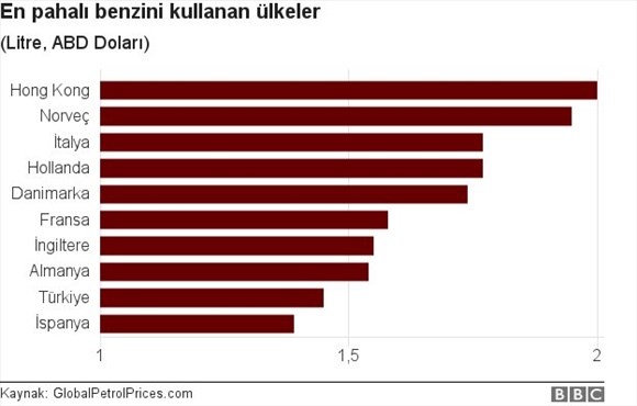 Son zammın ardından benzin 1,45 dolara yükseldi. Türkiye dünyada en pahalı benzini tüketen ülkeler listesinde.