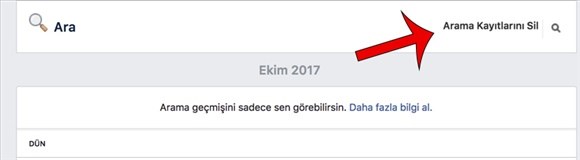 Facebook, yaptığımız tüm aramaları bir dahaki sefer yapacağımız aramalar için kolaylık sağlaması sebebiyle kayıt altında tutar.