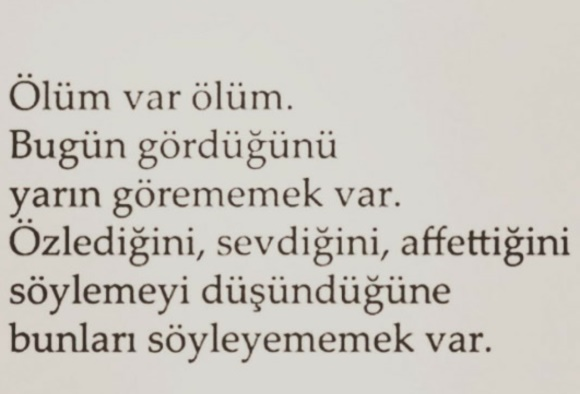 Birisi, kabuk tutmuş yaralarımızı okşamaya başladığında, cırt diye açılıveriyor ve oluk oluk kanama başlıyor yeniden… Birine teslim olduğumuzda ve içimizi döktüğümüzde, bedenimiz ve ruhumuz kan içinde kalıveriyor. O yüzden değil mi, içimizi tutmalarımız, birine teslim olmaktan korkmalarımız, ortalıkta tedirgin ve gergin dolanmalarımız? -anlatsam mı, anlatmasam mı?- kararsızlığımız, -bu sevgi beni acıtır mı?- kuşkularımız…