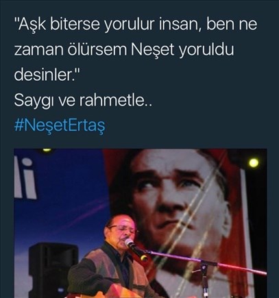 İnşallah Neşet Ertaş şimdi o sevdiğiyle cennet bahçesinde buluşmuştur. Dün namazda onun için ağlayarak dua ettim.