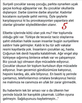 Bu yalanları tekrarlaya tekrarlaya birçok insanı inandırdılar... Nereden biliyorum? Suriyelilerin sınavsız üniversiteye gittiğini iddia eden ve buna öfkelenen öğrencilerden biliyorum. Üstelik bir imam hatip lisesinde... Başka bir okulda Suriyelilere yardım etmenin ne kadar yanlış olduğuna dair ortaokul çocuklarına nutuk atan bir öğretmeni biliyorum...