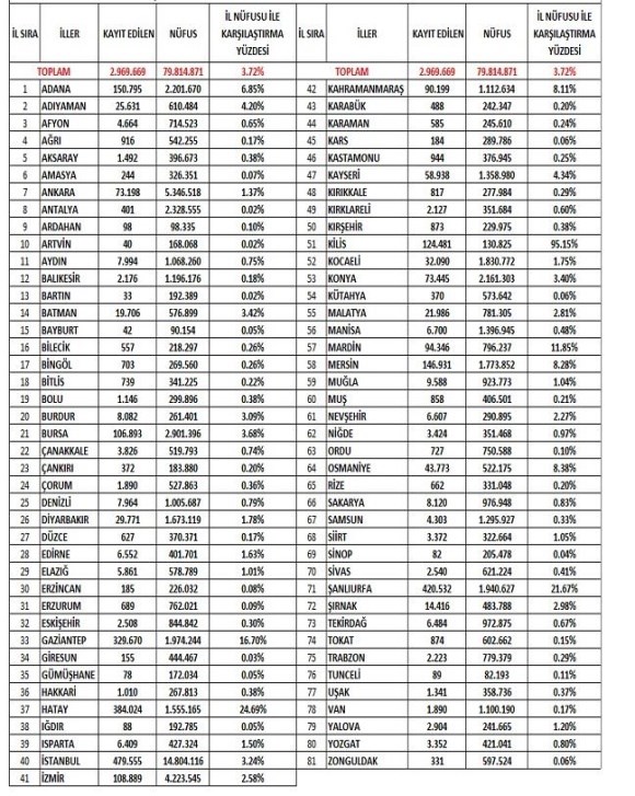 il göçe göre dağılım şu şekildeymiş.