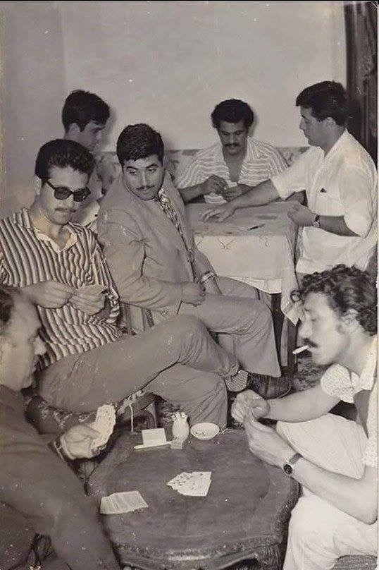 Beyoğlu figüranlar kahvesi. Resmin sağında kağıt oynayan Hüseyin Baradan. Arkadaki masada Erol Taş 1970'ler.